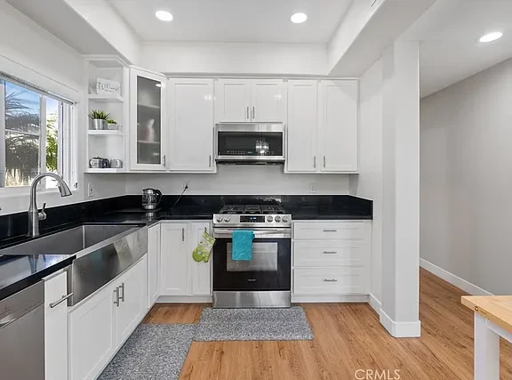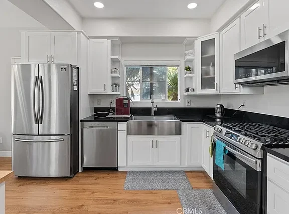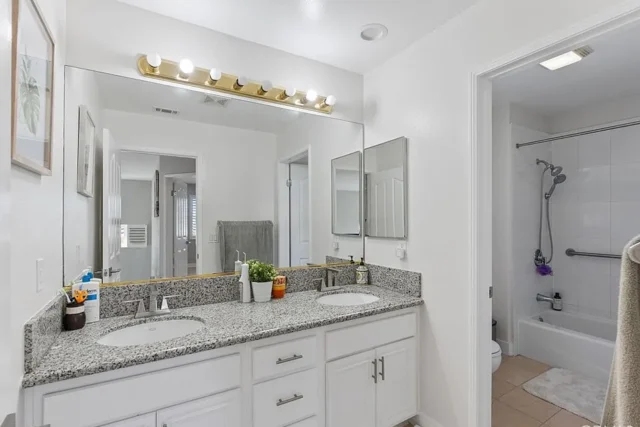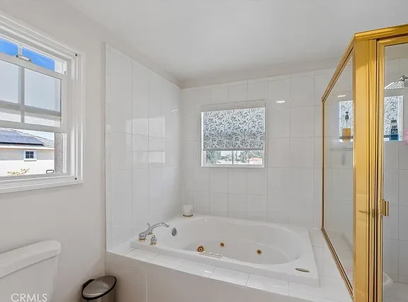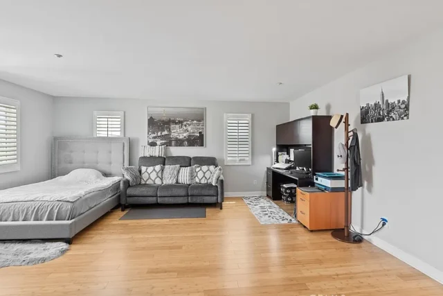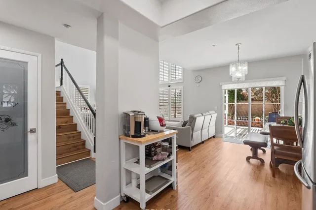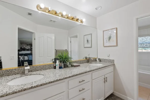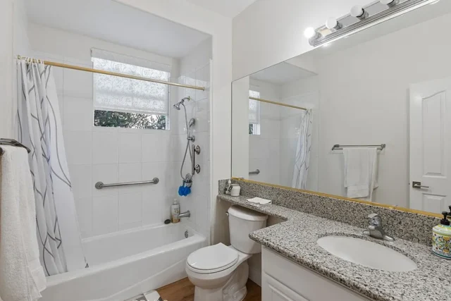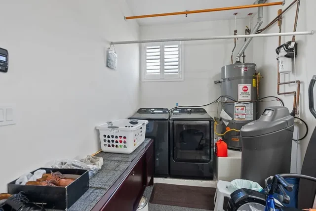 Beautifully 4-Bedroom Home in Prime Location! Bordering Cypress in a desirable, well-kept community, this stunning two-story single-family residence offers 4 bedrooms, 3 full baths, and 2,146 sq. ft. of living space – move-in ready! The bright and spacious living room features soaring cathedral ceilings, a cozy fireplace, wood flooring, plantation shutters, and abundant natural light. The open kitchen boasts quartz countertops, a pantry and a dishwasher, gas range with front controls, and microwave. Elegant crown molding and upgraded floors flow throughout. The expansive master suite offers a walk-in closet and a luxurious en-suite bath with double sinks, granite countertops, a Jacuzzi tub, and separate shower. Two additional bedrooms are located upstairs, while a convenient downstairs bedroom is perfect for guests or in-laws. The second upstairs bath features dual vanity areas, ideal for busy mornings, while the spacious downstairs bath adds extra convenience. Additional highlights include a central air system, water softener, oversized attached 2-car garage with direct access, driveway parking for 2, and an extra front parking space. The garage includes a large storage closet, plus there’s a bonus outdoor storage shed. Enjoy the private covered patio – perfect for entertaining and family gatherings. Fantastic location within walking distance to Target, Starbucks, Ross, Staples, and great restaurants, with Costco, parks, and schools just minutes away.