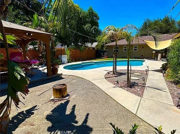 Welcome to 8514 Hickory Lane, a charming mid-century home on a spacious corner lot in Riverside’s Ramona neighborhood. This single-story home features 3 bedrooms, 2 bathrooms, and 1,404 sq ft of living space and an open layout. The bright living area includes a cozy brick fireplace and backyard views. Home has updated dual pane windows. Enjoy the central air conditioning and central heating system. Enjoy the private backyard oasis with a sparkling pool, covered patio, and lush landscaping—perfect for entertaining. The detached 2-car garage also features a convenient hook-up for your electric vehicle. The home is located near Cal Baptist University, parks, shopping, and freeway access. This home offers comfort, character, and convenience in one package. This one is a must-see and it won’t last long!
