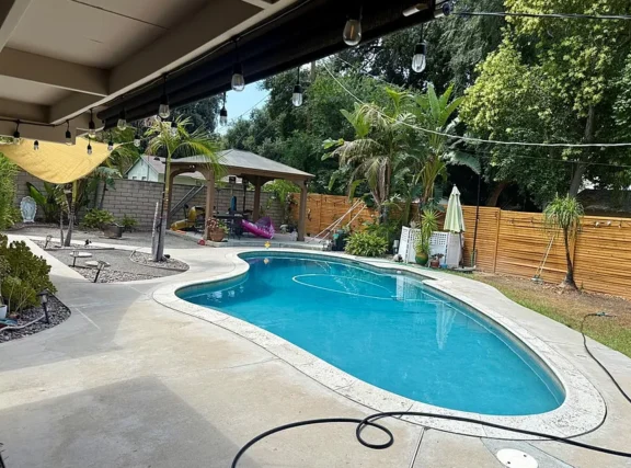 Welcome to 8514 Hickory Lane, a charming mid-century home on a spacious corner lot in Riverside’s Ramona neighborhood. This single-story home features 3 bedrooms, 2 bathrooms, and 1,404 sq ft of living space and an open layout. The bright living area includes a cozy brick fireplace and backyard views. Home has updated dual pane windows. Enjoy the central air conditioning and central heating system. Enjoy the private backyard oasis with a sparkling pool, covered patio, and lush landscaping—perfect for entertaining. The detached 2-car garage also features a convenient hook-up for your electric vehicle. The home is located near Cal Baptist University, parks, shopping, and freeway access. This home offers comfort, character, and convenience in one package. This one is a must-see and it won’t last long!